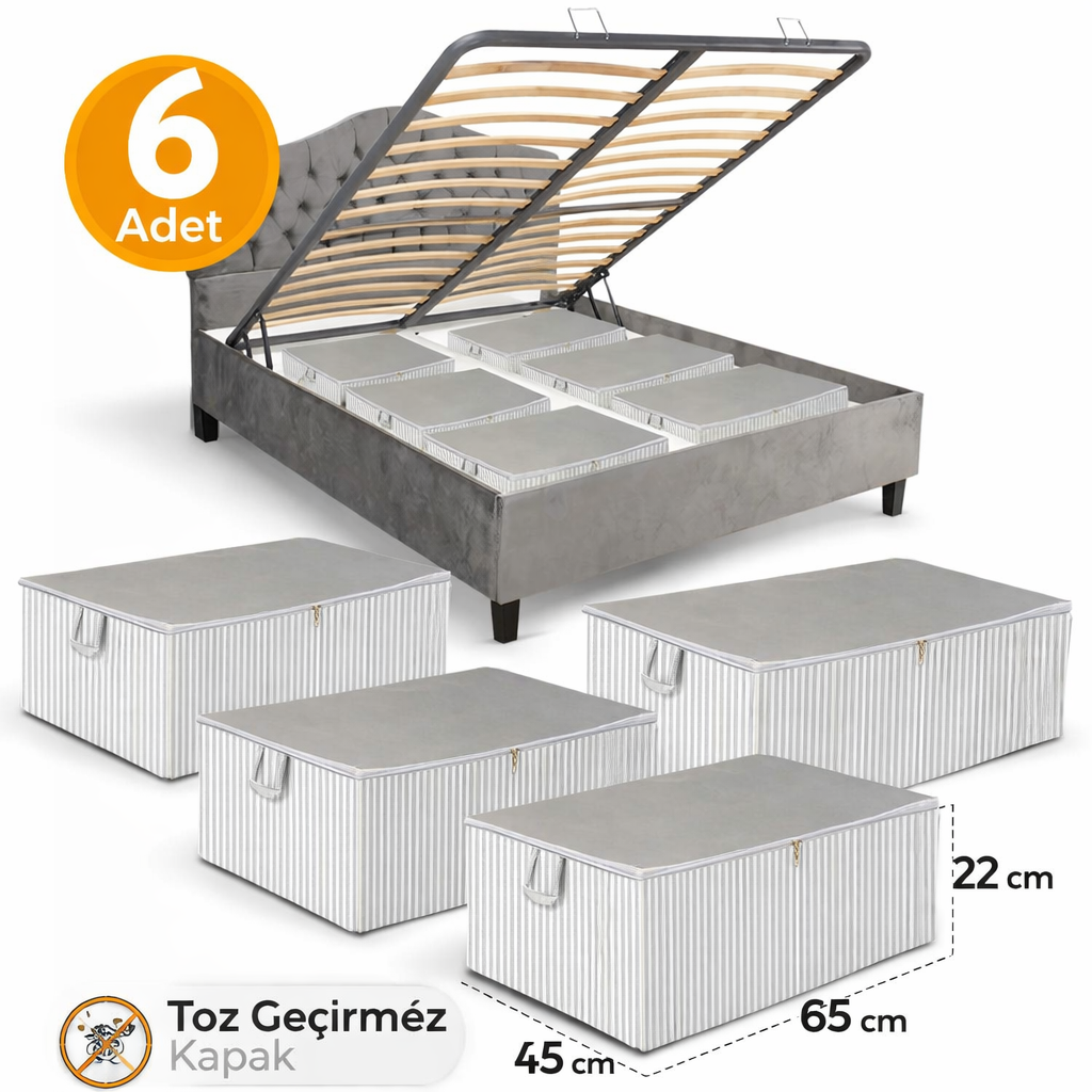 Antrasit Çizgili Büyük Boy Baza Altı Ve Çekyat Tipi Hurç 65 x 45 x 22 cm
